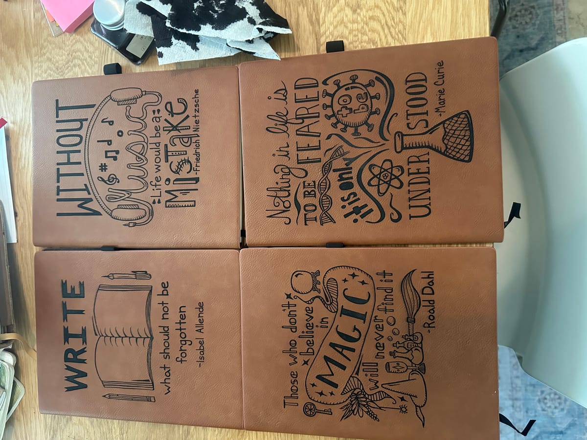 Towards the end of 2021 I found these wonderful vegan leather journals from a local artist in Austin called Pigsey Art. I think I may have first encountered her journals at the Austin Blue Genie.